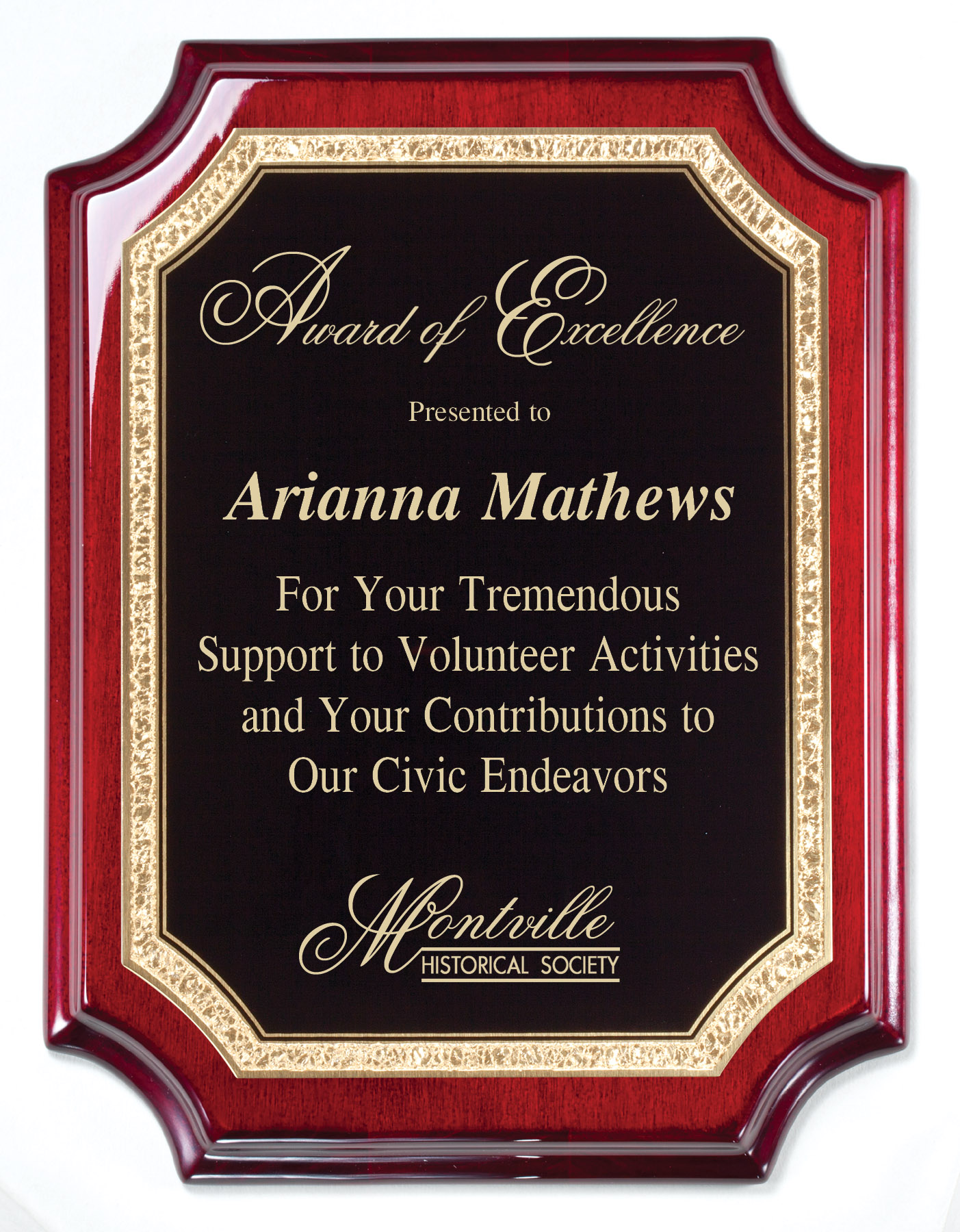 AP73 ROSEWOOD PIANO FINISH PLAQUE w/ BLACK BRASS GOLD ENGRAVING PLATE 9″X12″